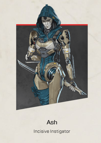 Ash is a Season 11 legend who is a common offensive choice in Apex Legends. Ash’s passive ability, Marked for Death, shows the locations of recent deaths and her tactical Arc Snare throws a snare at opponents, damaging them and slowing them down in the process.