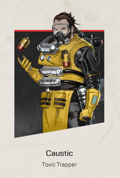 Caustic’s tactical ability, Nox Gas Trap, grants him large toxic gas containers that bypass shields to gradually damage enemies that come into contact with it. His ultimate Nox Gas Grenade hands him a gas grenade that spreads toxic gas over a large area of land, allowing him to hold and control chokepoints across the map.